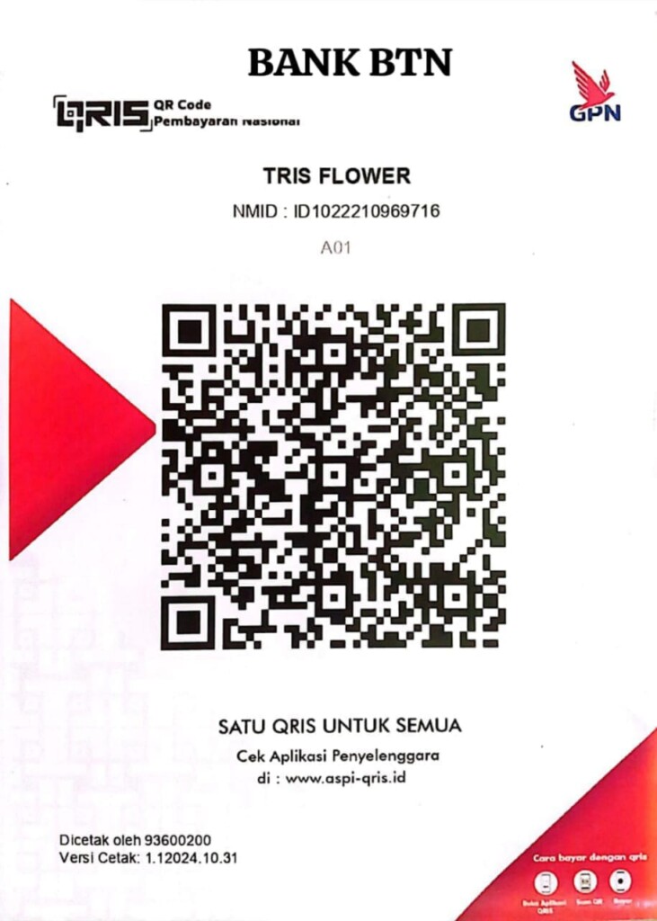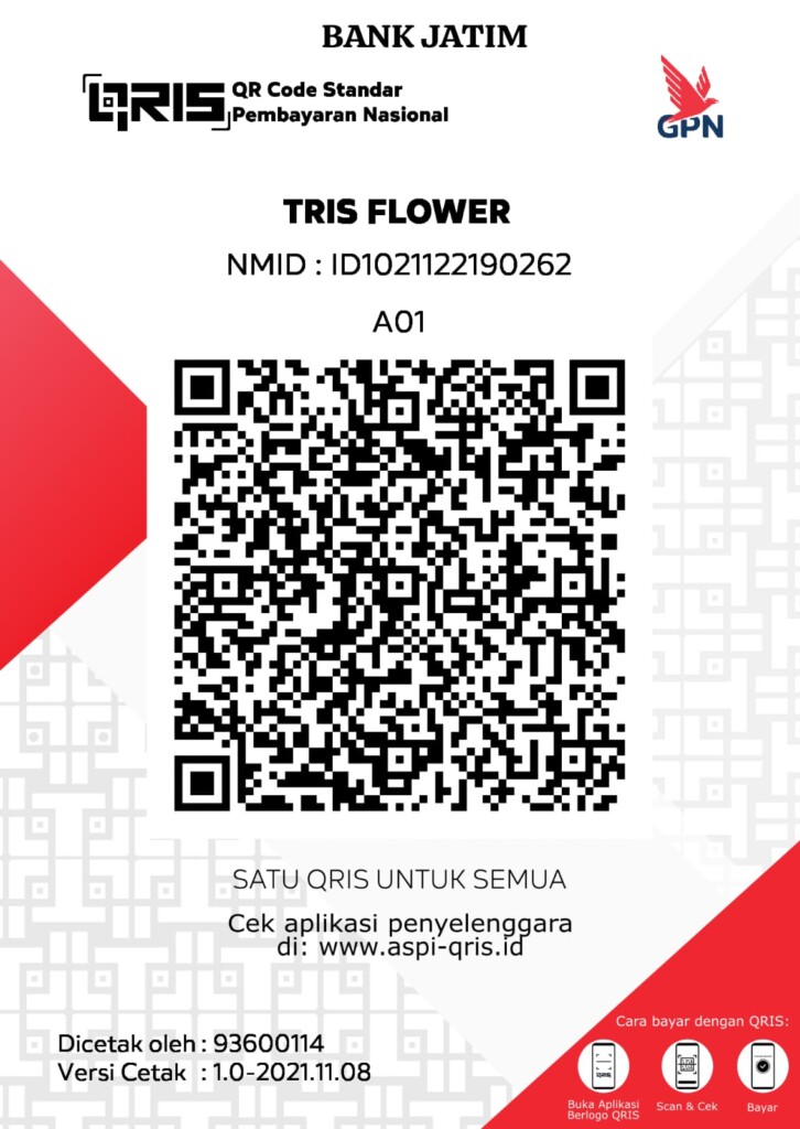 PEMBAYARAN TRANSAKSI TRIS FLOWER MELALUI QRIS BANK JATIM NO. REKENING : ( 1862010406 ) SBB: